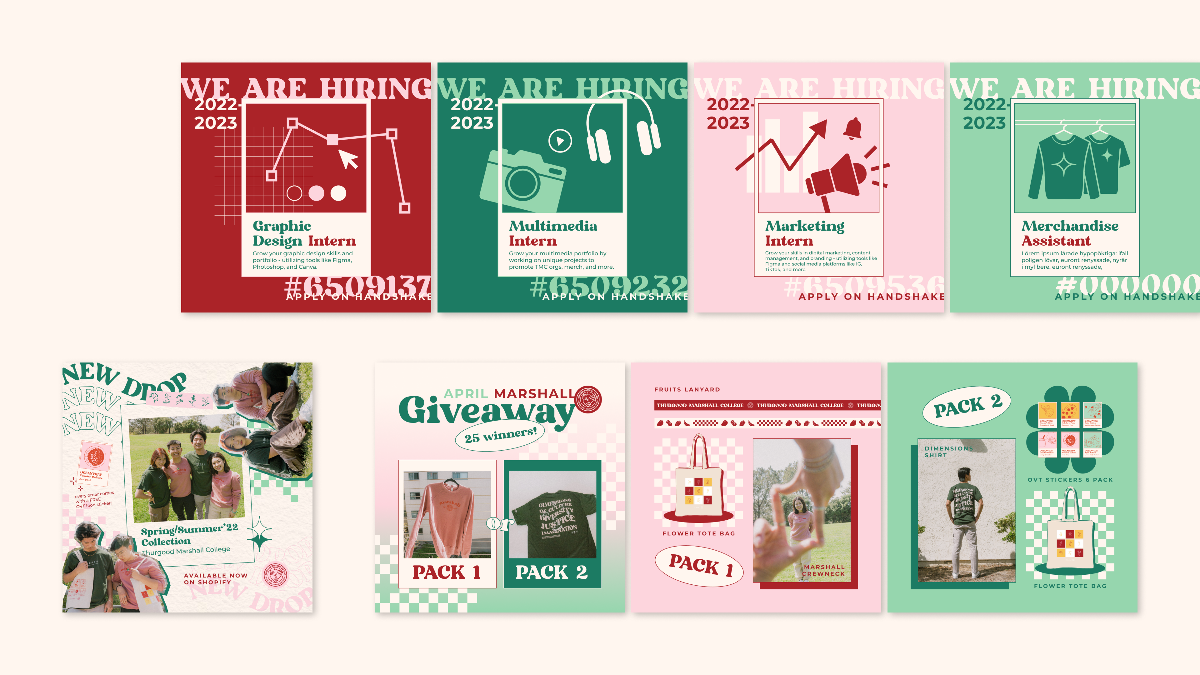 To develop a more consistent visual identity and enhance social media engagement, we brainstormed seasonal moodboards and created style guides accordingly every quarter. Our designs for social media, newsletter, merchandise, etc. would then follow the style guide closely. Here are some examples of how they were implemented:
