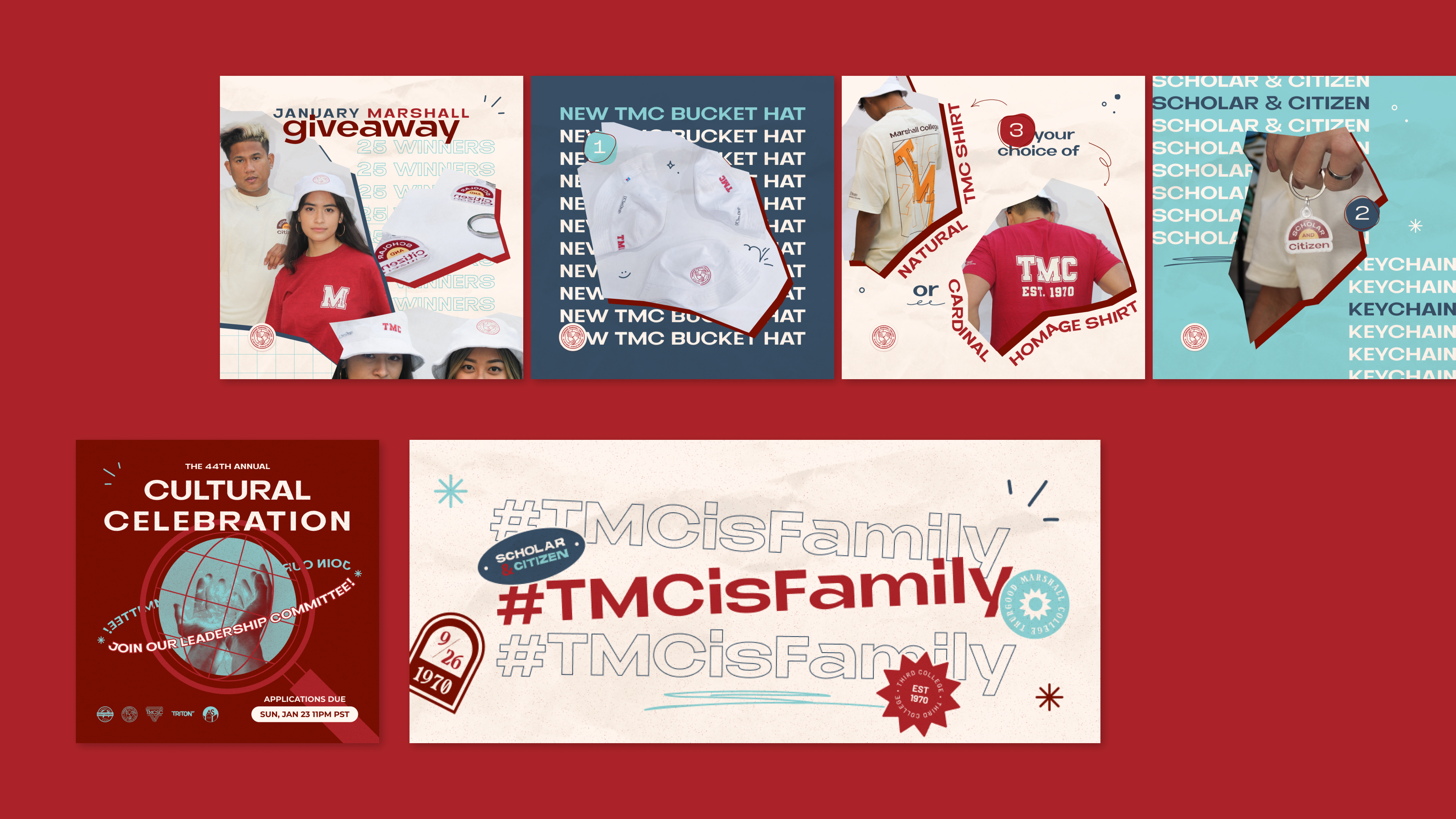 I worked as the Graphic Design Intern of Thurgood Marshall College at UCSD. As a part of their Design Team, I created digital assets, print materials, and various merchandise for promoting events, making academic announcements, and fostering students' sense of belonging to the Marshall community. We also provided graphic support – such as logo designs, branding, and website redesigns – for student organizations and college departments as requested.